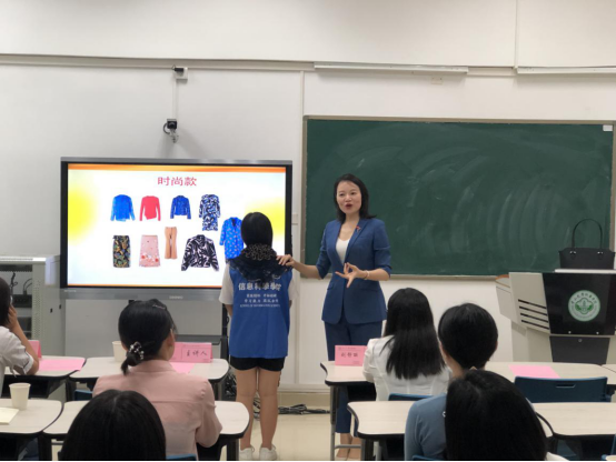刘玲老师以习近平总书记及夫人在正式场合的衣着搭配为例,强调了着装颜色搭配中最将就的“呼应”,也是一种浪漫、一种爱。 她讲到,职业着装搭配要坚持整体端庄大方的大原则和局部小点缀的“锦上添花”,刘玲老师拿出她自带的外套、衬衣展示出不同的搭配,让老师们现场学到了搭配技巧。