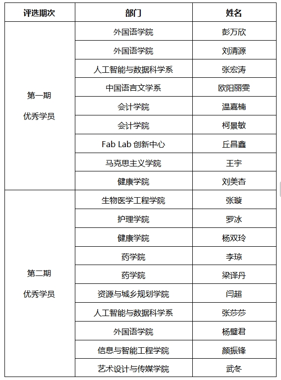 经过严格的作业评比和综合考核,44名表现突出的学员教师脱颖而出,荣获“优秀学员”称号,现予以表彰。44位优秀学员教师名单如下: